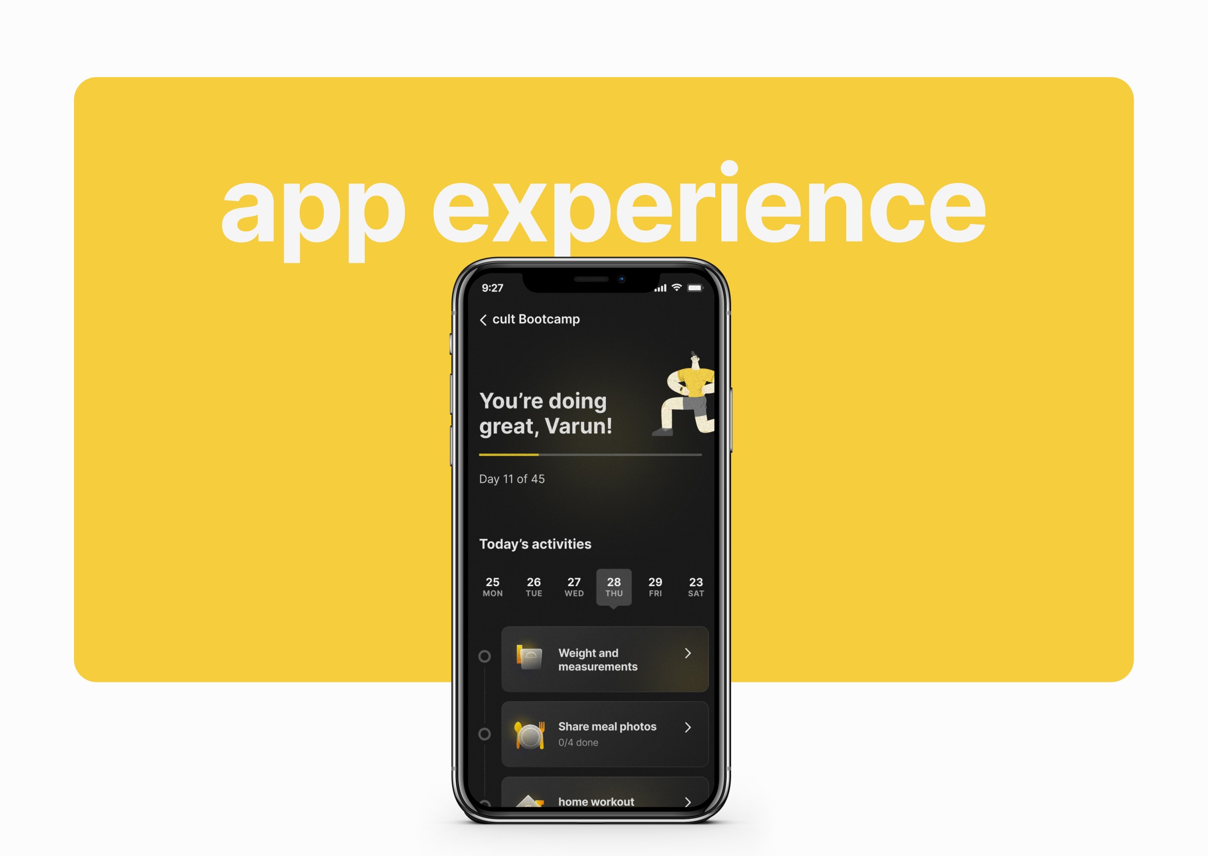 cult Bootcamp is a 6-week weight loss program that combines fun group workouts and personalised nutrition guidance to guarantee 2-5 kgs of weight loss. I was responsible for defining a visual Identity for the program, and extending it across platforms such as the cult.fit app, outdoor communication and merchandise offered to our members.