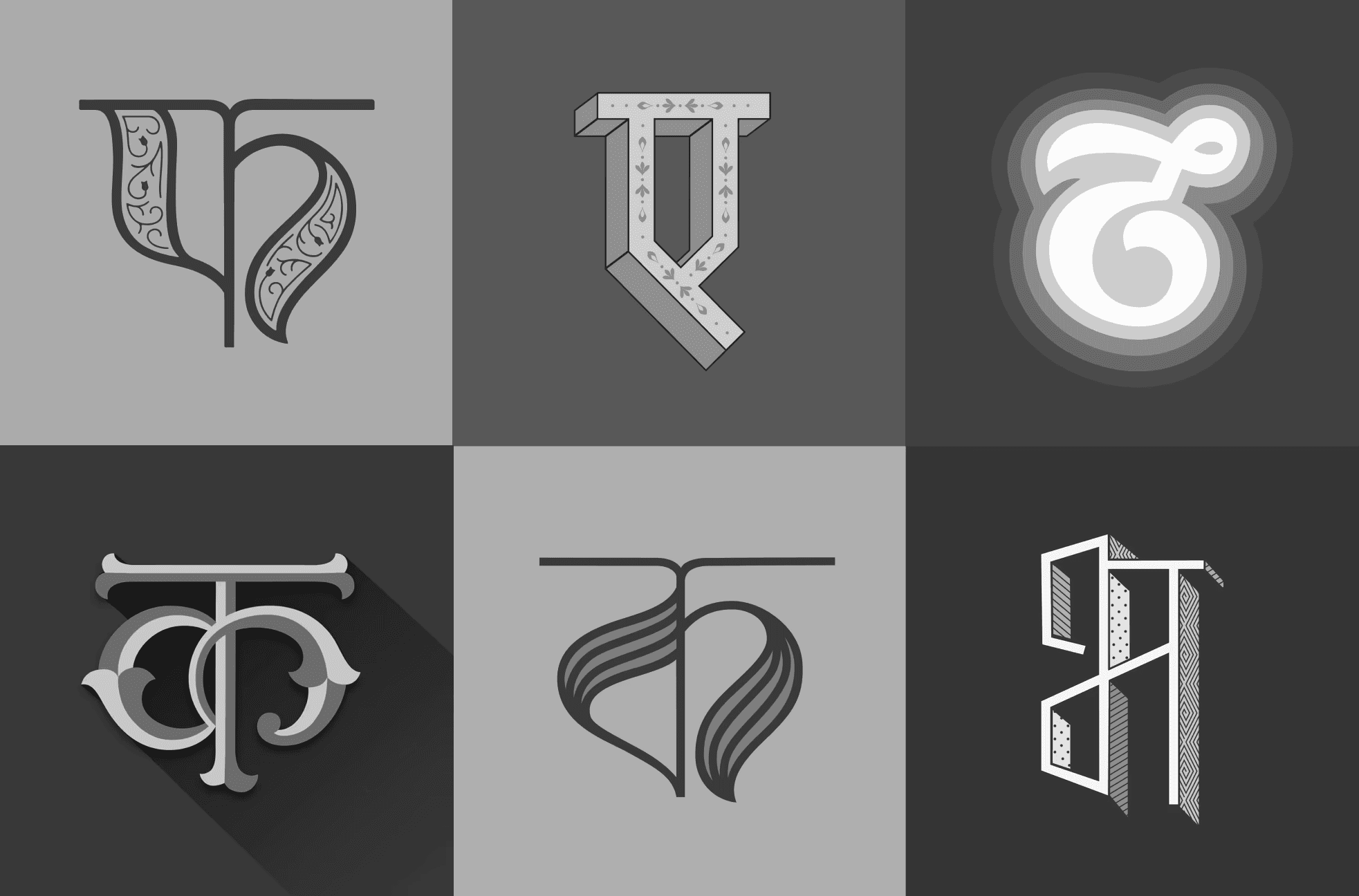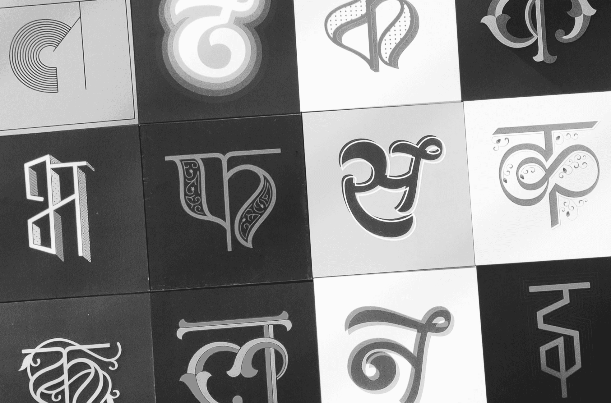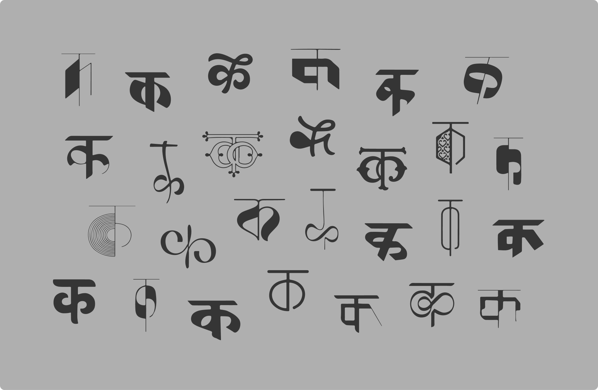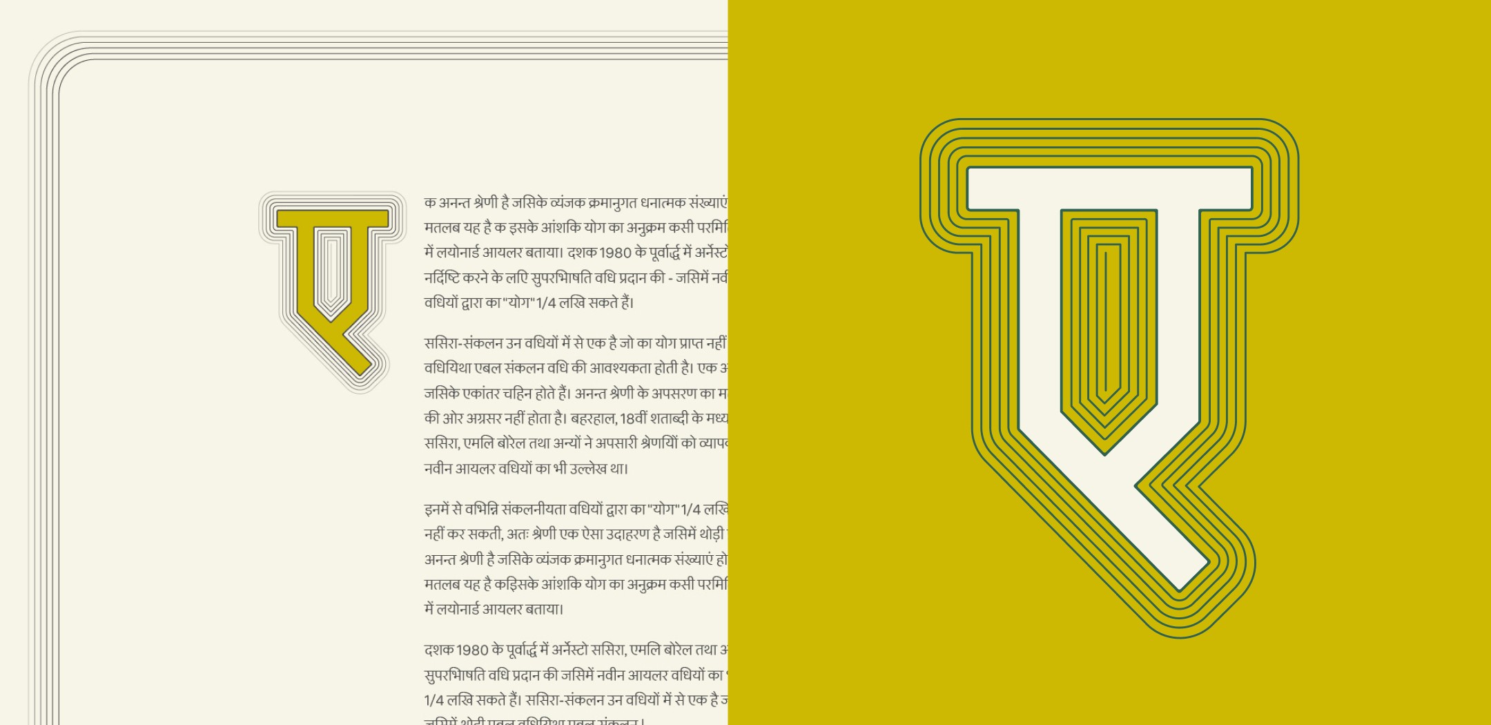 For my graduation project, I designed Devanagari drop caps or decorative initials—a design element traditionally associated with Latin scripts. This project allowed me to delve into the beauty and versatility of Devanagari letterforms, and to apply decorative and functional typographic techniques to a script that is less commonly explored in this context. The process began with four weeks of intensive calligraphy practice, helping me develop a deeper understanding of the letterforms.